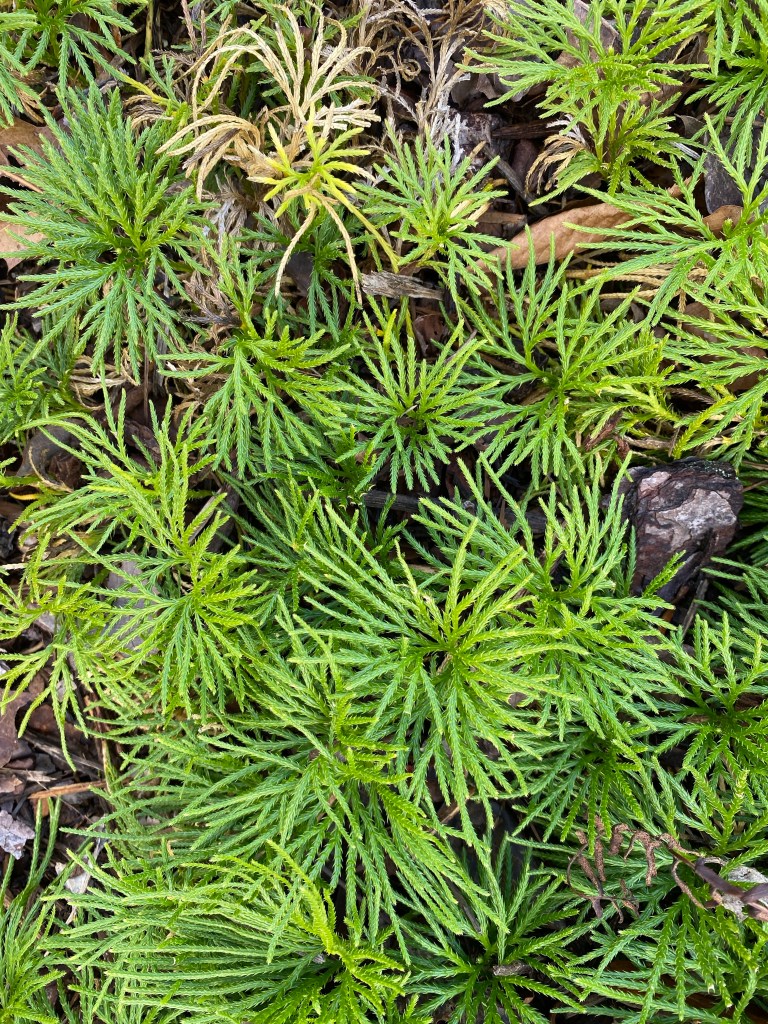 Ground cedar is an attractive evergreen forest groundcover that spreads by underground runners. The scientific name is Diphasiastrum digitatum. Its older Latin name, Lycopodium digitatum means “wolf’s foot”. It’s a conversation piece when seen on a hike.