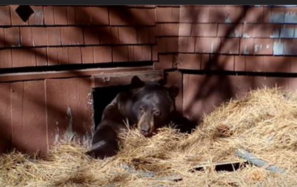It’s not unusual for a bear to den up and even give birth under decks, in crawl spaces, or under bushes and brush piles. Old tires, piles of building materials and other debris can offer attractive possibilities. Bears may make themselves at home in vacant buildings, even when they are really garages, storage sheds or vacation homes that are only vacant over the winter.