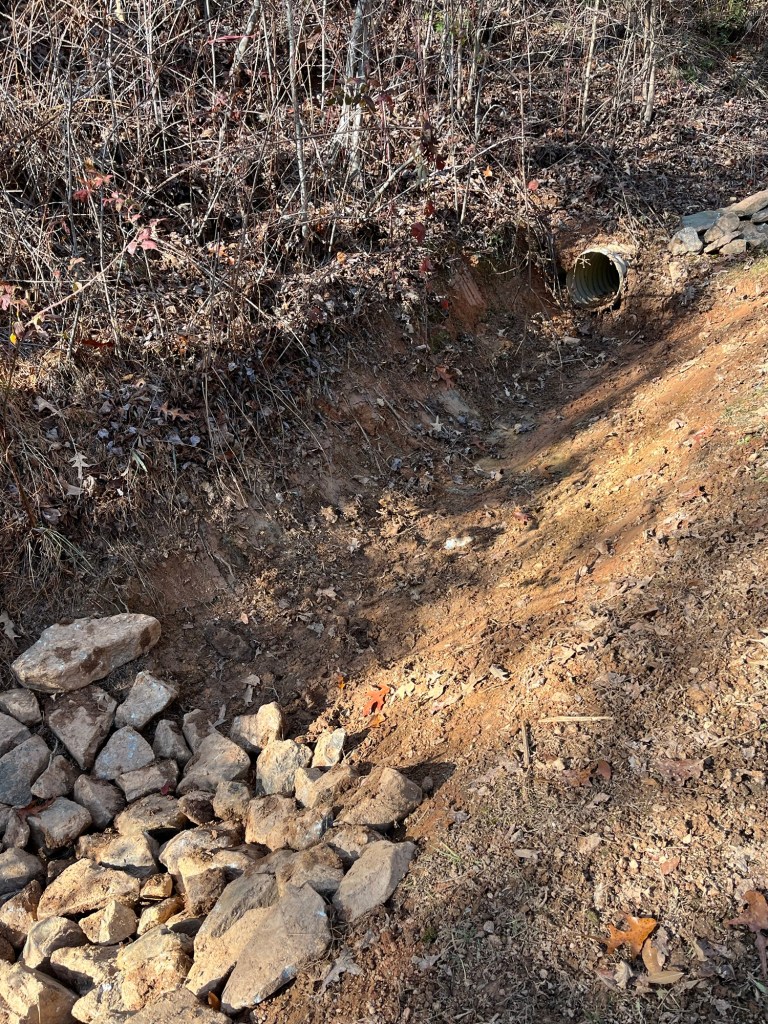 This week roughly 175 feet of ditch line repair and installation of rip rap was completed along Beech Tree Drive.