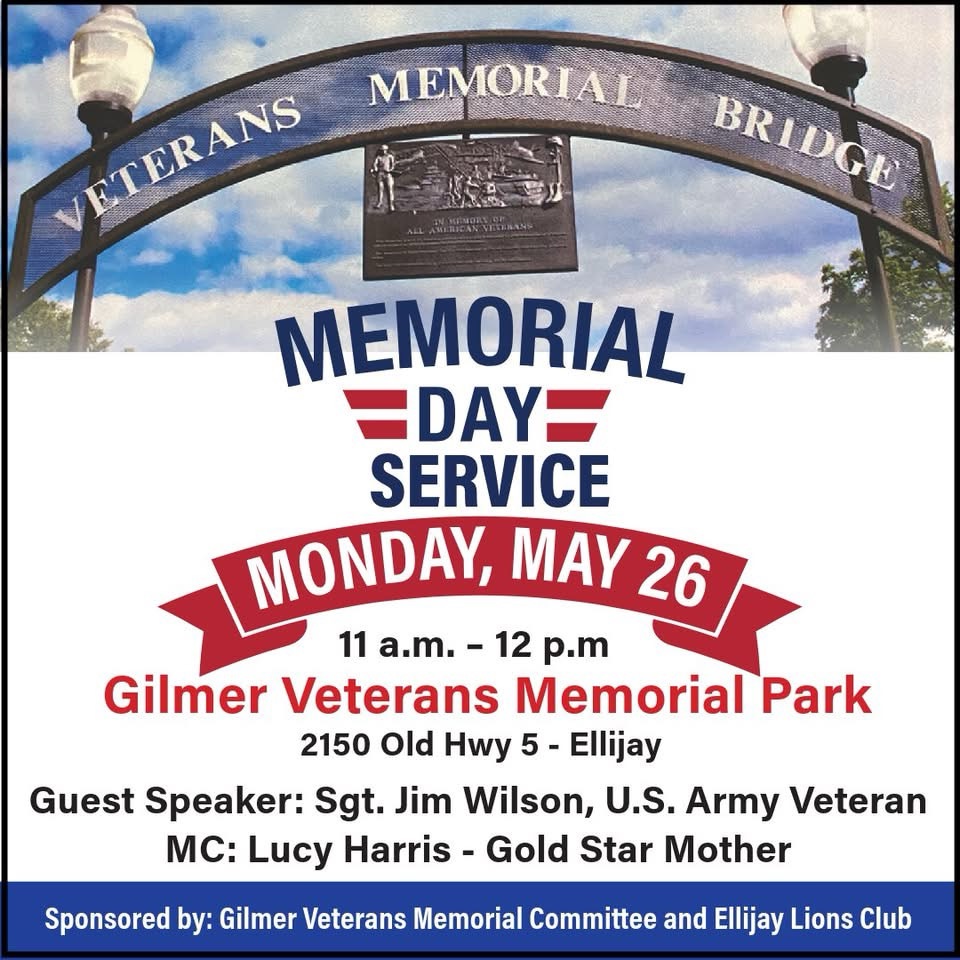 In the event of rain, the ceremony will be moved to the Ellijay Lions Club Pavilion. Please plan to attend! We will distribute programs, pins, and water.
